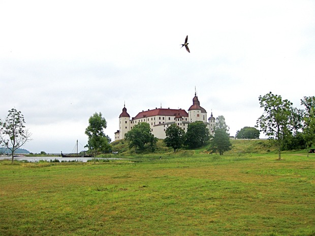 We are finding the still open campgrounds to be the large family-oriented resorts that cater to families during the Swedish vacation period. It seems to have ended in mid-August; in fact, one of the places we stayed at actually had closed down half the camping spots already. We drove on to Lidköping, stayed one night in the rain, and then drove north to the lovely Läckö Slott (Castle) standing out on a point on Vänern lake (and we certainly hope the purists among our readers appreciate the trouble we’ve taken to get the diacritic markings right!)