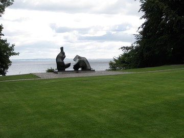 We might have considered staying another day but the long trip into the city, combined with the heat and humidity, proved to be just a little too much for us. So on Wednesday we drove around Copenhagen on a ring road and headed north 34 miles to “Louisiana,” a modern art gallery on a beautiful spot with gorgeous trees and gardens overlooking the Kattegatt.